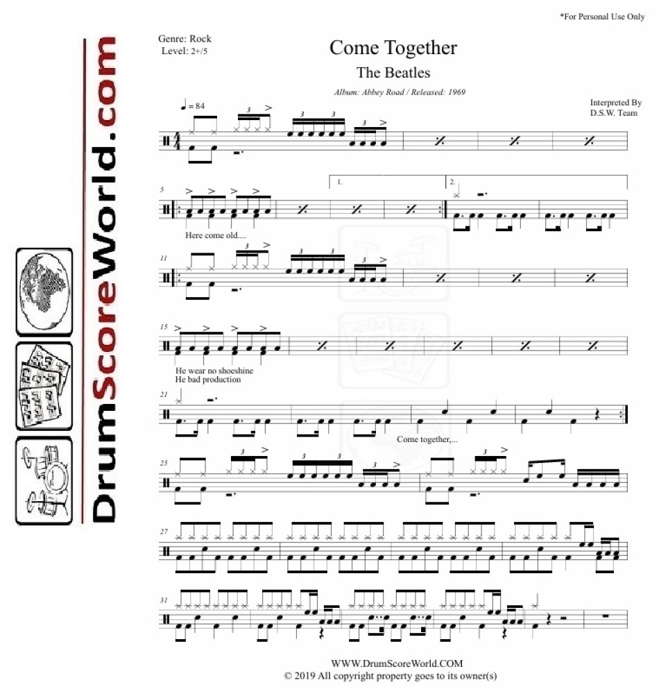 Master the Groove of "Come Together" – Drum Sheet & Play-Along Track!