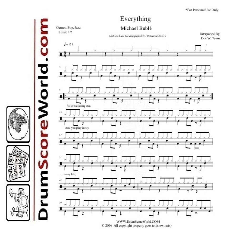 Michael Bublé - Everything - Drum Sheet