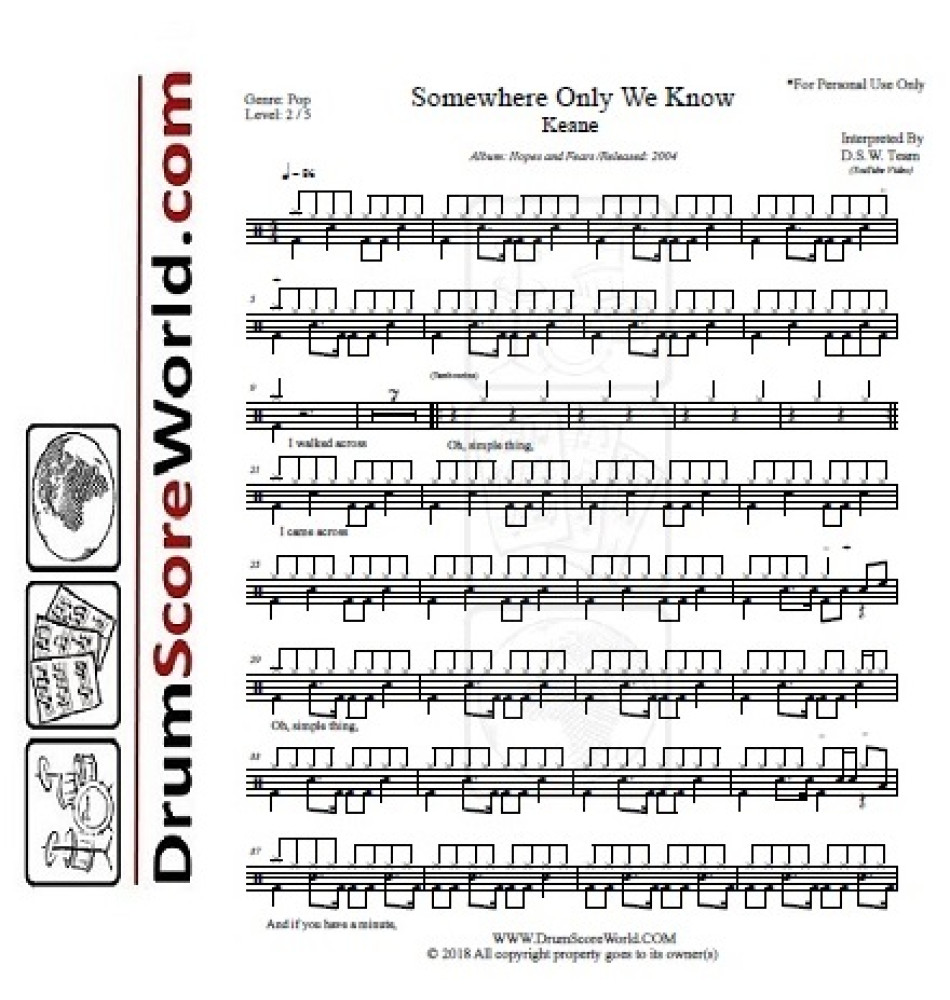 Keane - "Somewhere Only We Know" | Drum Sheet Music + PLAY-ALONG TRACK