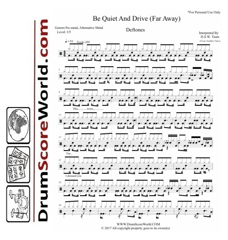 Deftones – Be Quiet and Drive (Far Away) - Drum Sheet + Play-Along Track