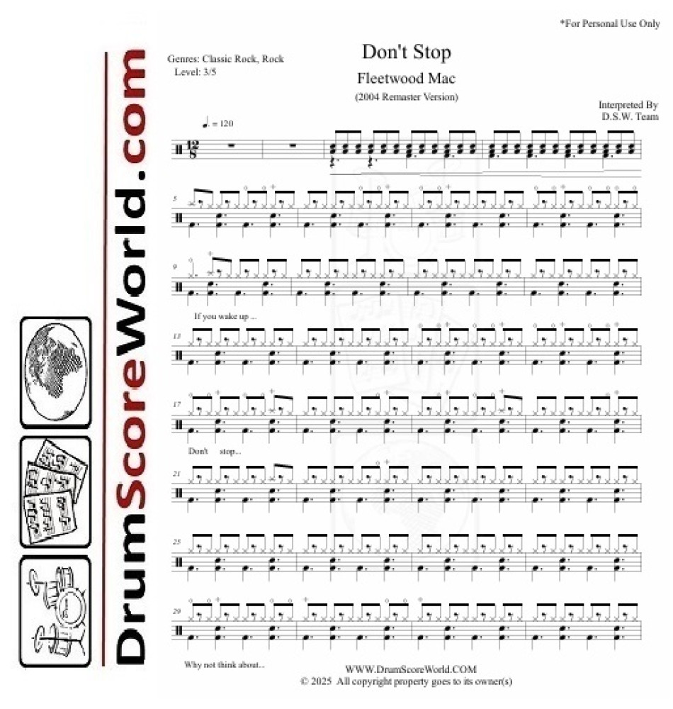 Fleetwood Mac - Don't Stop - Drum Sheet + Play-Along Track
