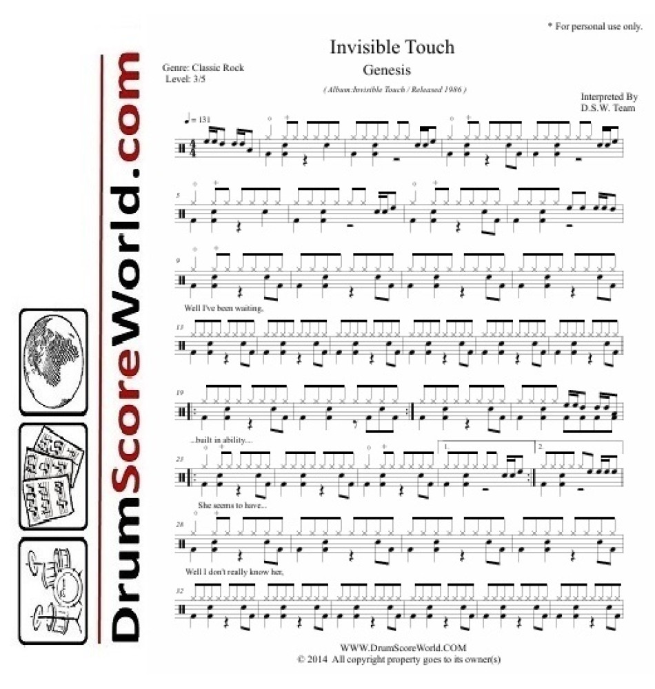 Genesis - Invisible Touch | Drum Sheet Music PDF & Play-Along Track | Lyrics