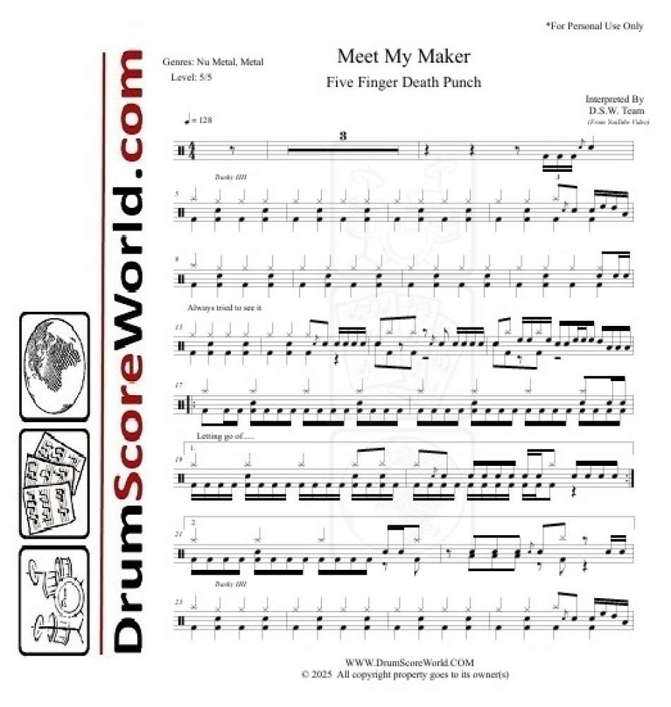 Five Finger Death Punch - Meet My Maker | Drum Sheet